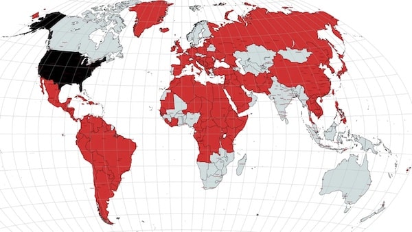 Lista krajów, które atakuje wojsko USA, obejmuje zdecydowaną większość narodów na Ziemi, w tym prawie wszystkie hrabstwa w Ameryce Łacińskiej i na Karaibach oraz większość kontynentu afrykańskiego.
