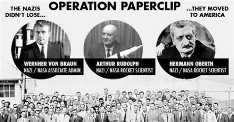 Wywiad wojskowy „wyczyścił" akta nazistowskich odniesień. Do 1955 r. ponad 760 niemieckich naukowców otrzymało obywatelstwo amerykańskie i otrzymało ważne stanowiska w amerykańskiej społeczności naukowej. Wielu z nich było długoletnimi członkami partii nazistowskiej i gestapo, przeprowadzało eksperymenty na ludziach w obozach koncentracyjnych, wykorzystywało niewolniczą pracę i popełniało inne zbrodnie wojenne.