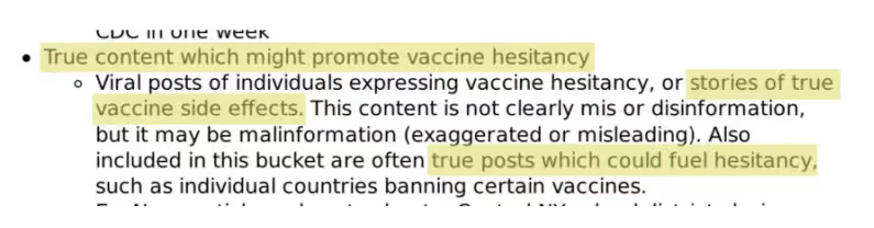 VP wykroczył daleko poza zakres dezinformacji, najbardziej haniebnie zalecając swoim partnerom z Big Tech, aby uważali „prawdziwe historie o skutkach ubocznych szczepionek" za „standardową dezinformację na twojej platformie".
