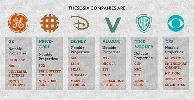 Te 6 korporacji kontroluje 90% mediów w Ameryce!