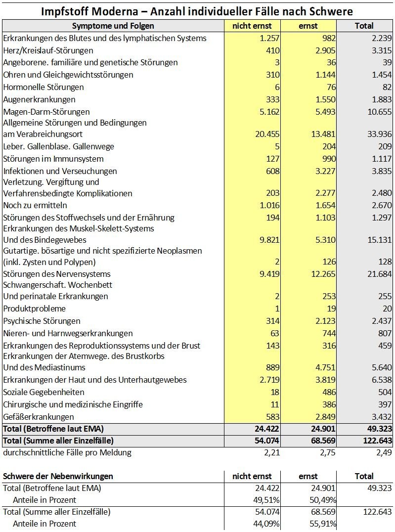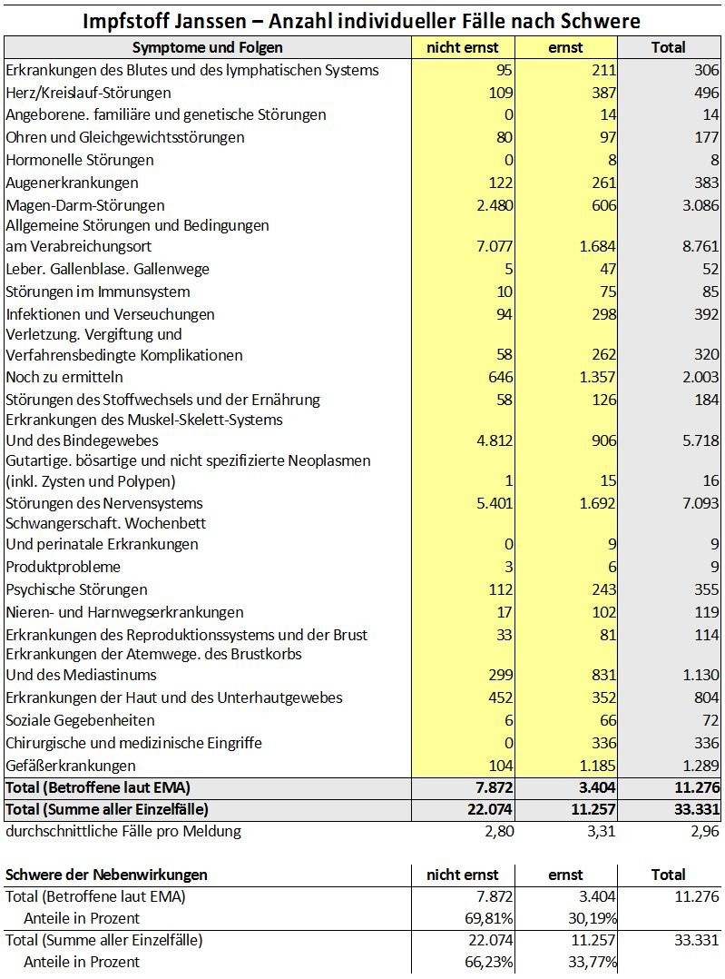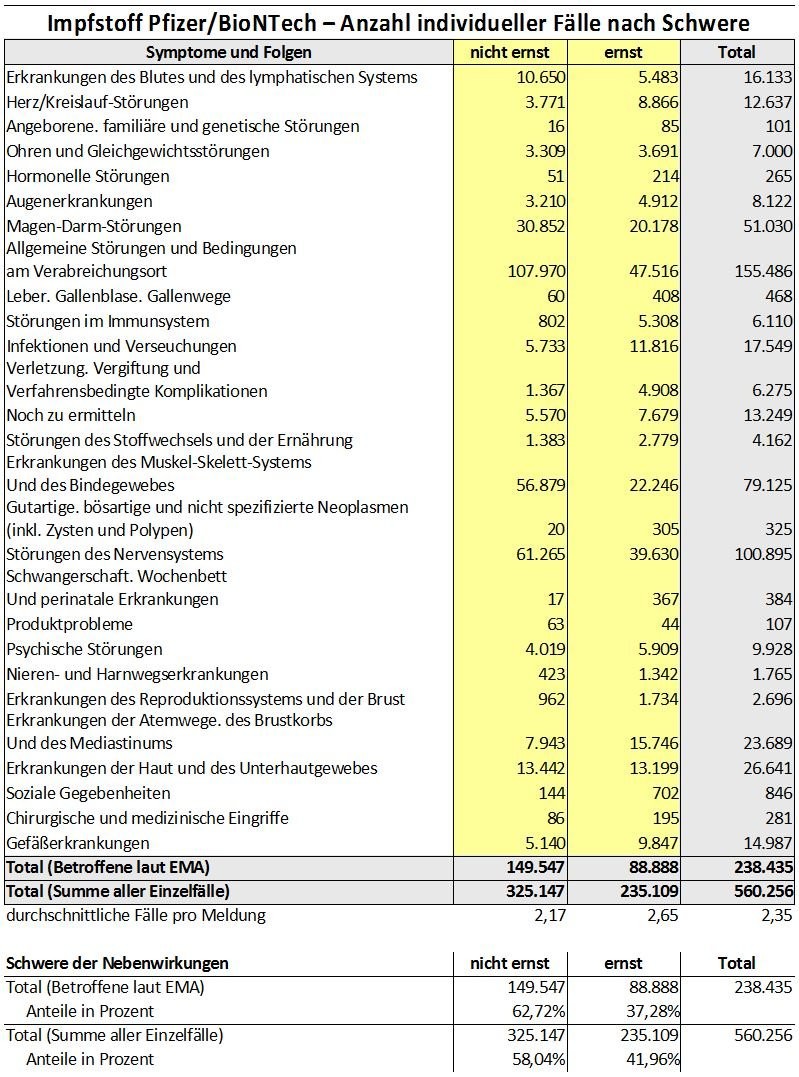 Podczas gdy badania przeprowadzone przez producentów mówiły przede wszystkim o „dobrej tolerancji" i „łagodnych do umiarkowanych skutkach ubocznych" eksperymentalnych szczepionek, dane z EMA przedstawiają inny obraz. W związku z tym połowa zgłoszeń i symptomów została opisana jako „poważna".