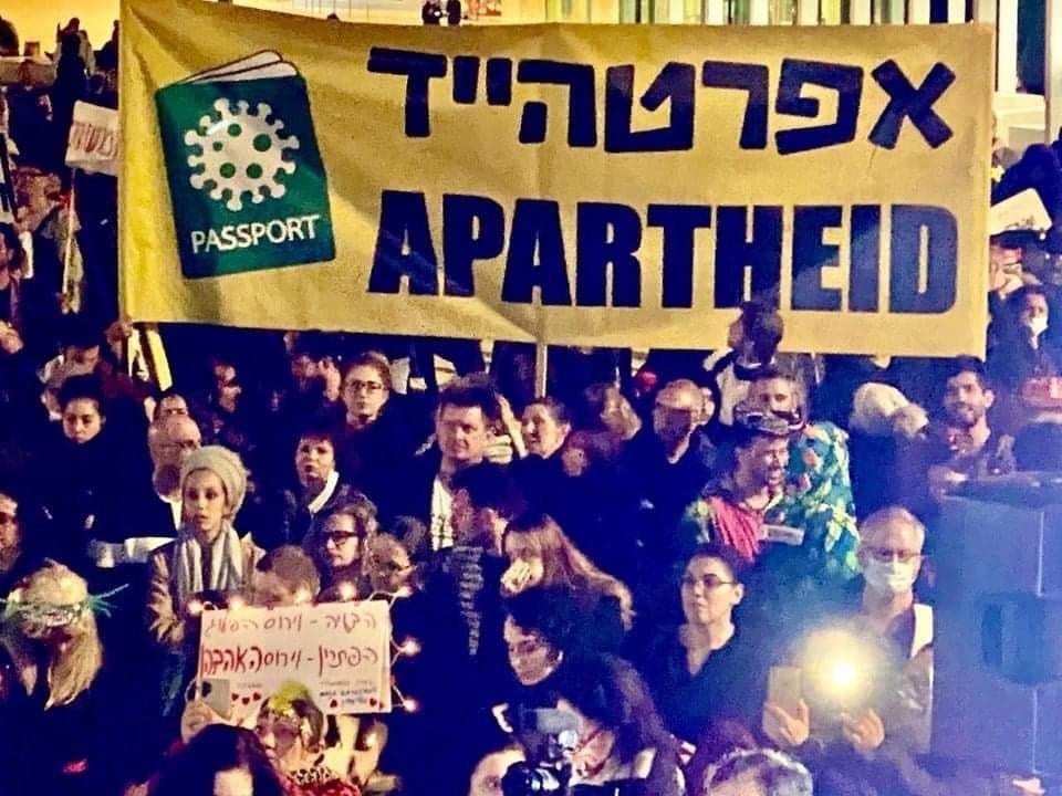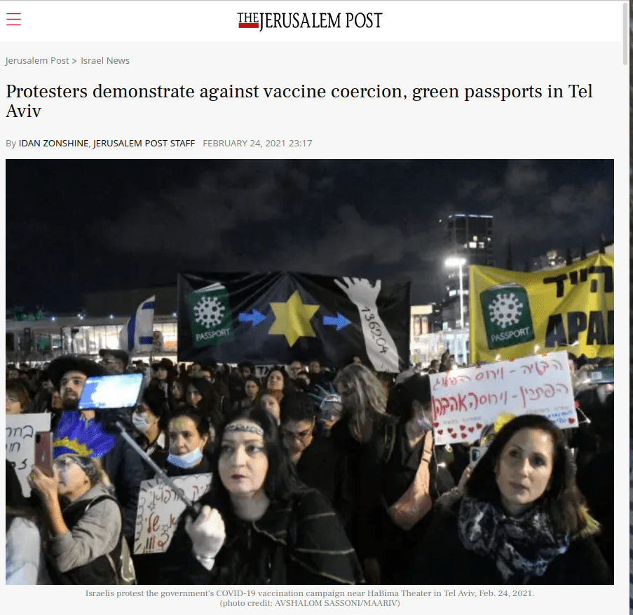 Zrozumiałe jest, że budzi to skojarzenia, które symbolizowane są na transparentach podczas demonstracji, jak pokazuje Jerusalem Post:Lecz zamiast „szczepić"