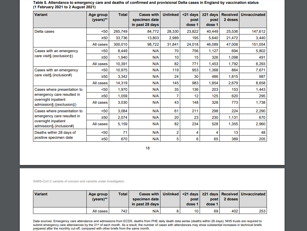 Rząd Wielkiej Brytanii właśnie przedstawił następujące dane, schowane w swoim raporcie na temat zgonów szczepionych i nieszczepionych, które budzą obawy: